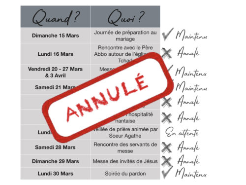 La paroisse Saint François des Coteaux se voit dans l’obligation de modifier son programme pour les semaines à venir. Dans cet article, nous vous faisons le point sur ce qui est maintenu ou ce qui est annulé.